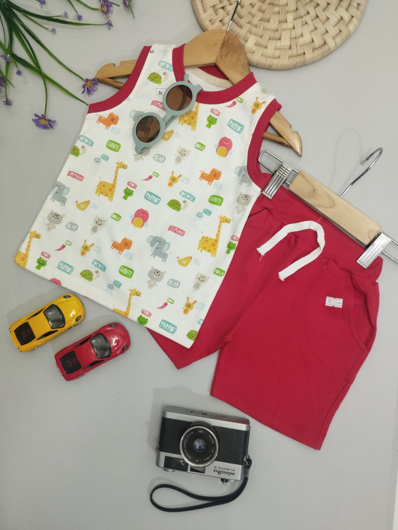 ست تاپ شلوارک پسرانه و دخترانه طرح حیوانات