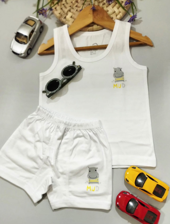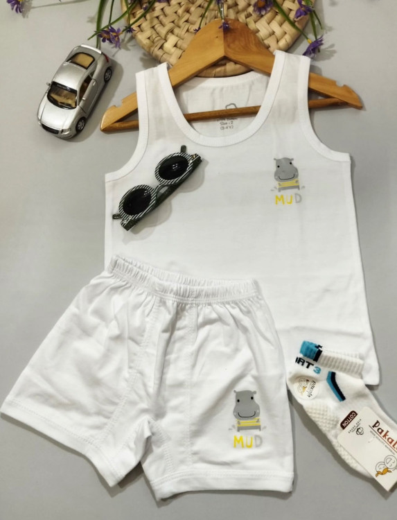 ست رکابی شورت پسرانه سفید طرح اسب ابی